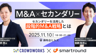 18:00 - 21:00【クラウドワークス・スマートラウンド共催】M&A × セカンダリー 〜セカンダリーを活用した「段階的M&A戦略」とは〜麻布台ヒルズ