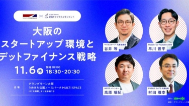18:00 - 20:30【交流会あり】大阪のスタートアップ環境とデットファイナンス戦略グラングリーン大阪 うめきた公園ノースパーク MULTI SPACE