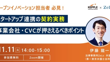 14:00 - 15:00スタートアップ連携の契約実務 ― 事業会社・CVCが押さえるべきポイントオンライン(Zoom)