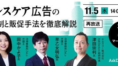 14:00 - 15:00攻め×守りのマーケティング!ヘルスケア広告の法規制と販促手法を徹底解説(再放送)オンライン(Zoom)