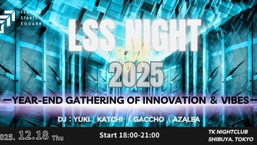 18:00 - 21:00LSS∞NIGHT – Year-End Gathering of Innovation & VibesTK NIGHTCLUB(東京都渋谷区宇田川町13-8 B1)