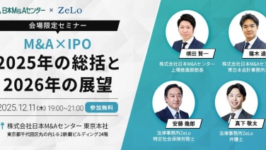 19:00 - 21:00【会場限定セミナー】M&A×IPO 2025年の総括と2026年の展望株式会社日本M&Aセンター 東京本社 東京都千代田区丸の内1-8-2 鉄鋼ビルディング24階 セミナールーム2