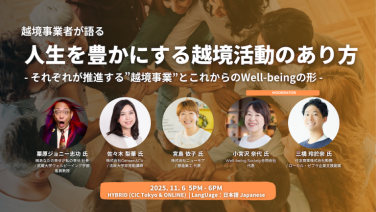 17:00 - 18:00越境事業者が語る 人生を豊かにする越境活動のあり方 - それぞれが推進する”越境事業”とこれからのWell-beingの形 -CIC Tokyo