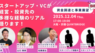 17:00 - 19:00【第4弾】SU×VC・CVCが経営・事業上の多様な経験のリアル語る!交流会イベント大阪市都島区東野田町4丁目15−82 QUINTBRIDGE 1F(メインステージ)