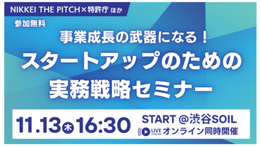 16:30 - 19:00【NIKKEI THE PITCH × 特許庁ほか】事業成長の武器になる!スタートアップのための実務戦略セミナー(ハイブリッド開催)渋谷SOIL