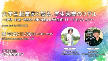 11:45 - 12:45大学生起業家と語る、学生起業のリアル ~仲間・お金・時間どう乗り越える?学生向けトークセッションTokyo Innovation Base 1階