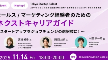 18:00 - 20:00セールス / マーケティング経験者のためのネクストキャリアガイド~スタートアップをジョブチェンジの選択肢に!~Tokyo Innovation Base