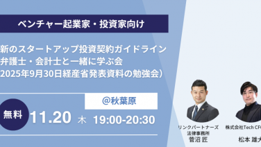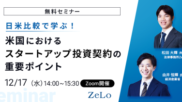 14:00 - 15:30日米比較で学ぶ!米国におけるスタートアップ投資契約の重要ポイントオンライン(Zoom)