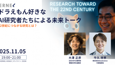 19:00 - 21:00【緊急開催】ドラえもん好きな AI研究者たちによる未来トーク(大澤先生×牛久先生)〜22世紀につながる研究とは?〜KERNEL HONGO(東京都文京区本郷4-1-4 Design Place α 3F)