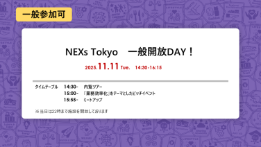 14:30 - 16:30【東京都主催】NEXs Tokyo「業務効率化」をテーマとしたスタートアップピッチイベントNEXs Tokyo(東京都千代田区丸の内3-3-1 新東京ビル4階)
