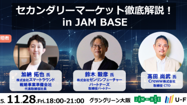 18:00 - 21:00セカンダリーマーケット徹底解説!in JAM BASE ―基礎と最新動向、新たなオープンイノベーション戦略の可能性―JAM BASEカンファレンス