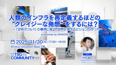 17:00 - 18:00人類のインフラを再定義するほどの “クレイジーな発想” をするには? 〜「空飛ぶクルマ」の事例に見る、世界を変えるビジョンの作り方〜Tokyo Innovation Base 1階