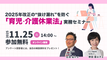 14:00 - 15:15管理監督者の範囲設定&業務委託の労働者性と人事制度への影響オンライン(Zoom)