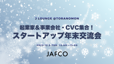 12:00 - 13:00起業家&事業会社・CVC集合!スタートアップ年末大交流会 by JAFCO東京都港区虎ノ門1-23-1 虎ノ門ヒルズ森タワー24階 ジャフコ グループ株式会社 本社オフィス内 Jラウンジ