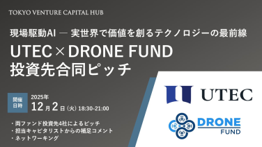 18:30 - 21:00現場駆動AI ― 実世界で価値を創るテクノロジーの最前線 UTEC × DRONE FUND投資先合同ピッチオフラインのみ(麻布台ヒルズ ガーデンプラザB 5F Tokyo Venture Capital Hub Lounge)