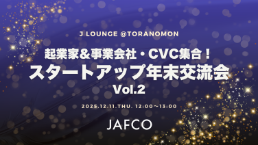 12:00 - 13:00起業家&事業会社・CVC集合!スタートアップ年末大交流会 Vol.2 by JAFCO東京都港区虎ノ門1-23-1 虎ノ門ヒルズ森タワー24階 ジャフコ グループ株式会社 本社オフィス内 Jラウンジ
