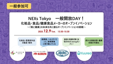 14:00 - 15:30「化粧品・食品/健康食品メーカーのオープンイノベーション」 ー『美と健康』の未来を共に創るオープンイノベーションの挑戦ー ピッチイベントのご案内(NEXs Tokyo一般開放DAY)NEXs Tokyo(東京都千代田区丸の内3-3-1 新東京ビル4階)